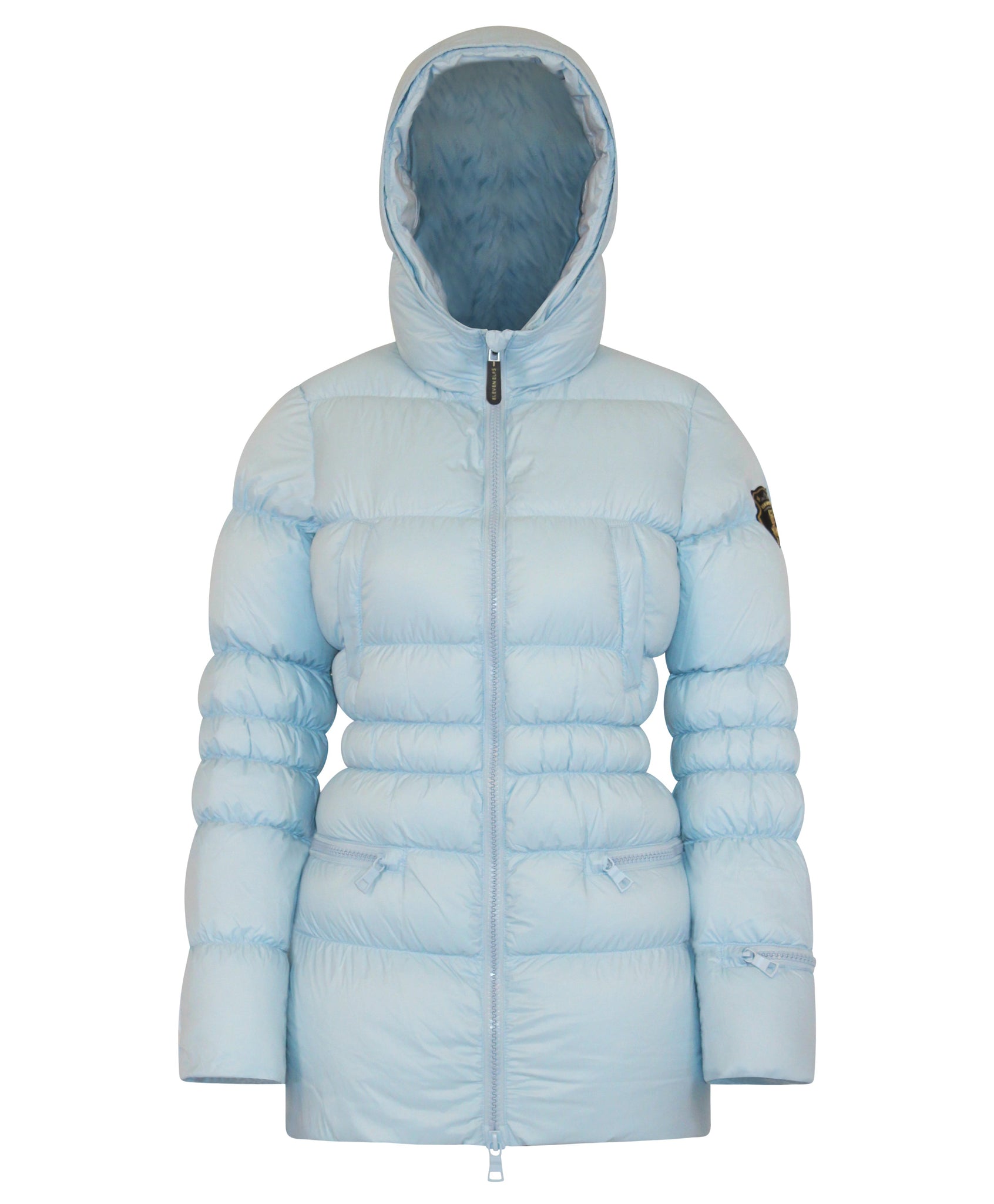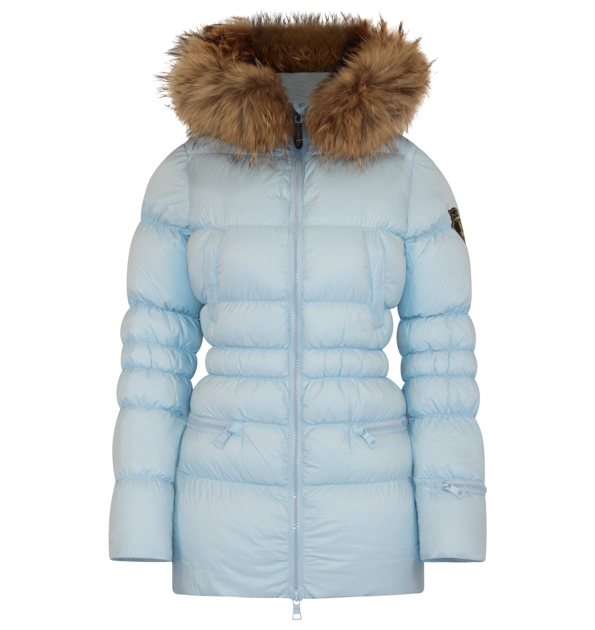 This mid-length down puffer jacket contours the body, while keeping you warm and dry with a water repellent shell, storm cuff sleeves, and a down-filled hood with removable fur trim. Style meets function with 2 fleece-lined zip pockets, a signature sleeve cuff zip pocket, and a mesh chest pocket on the inside.