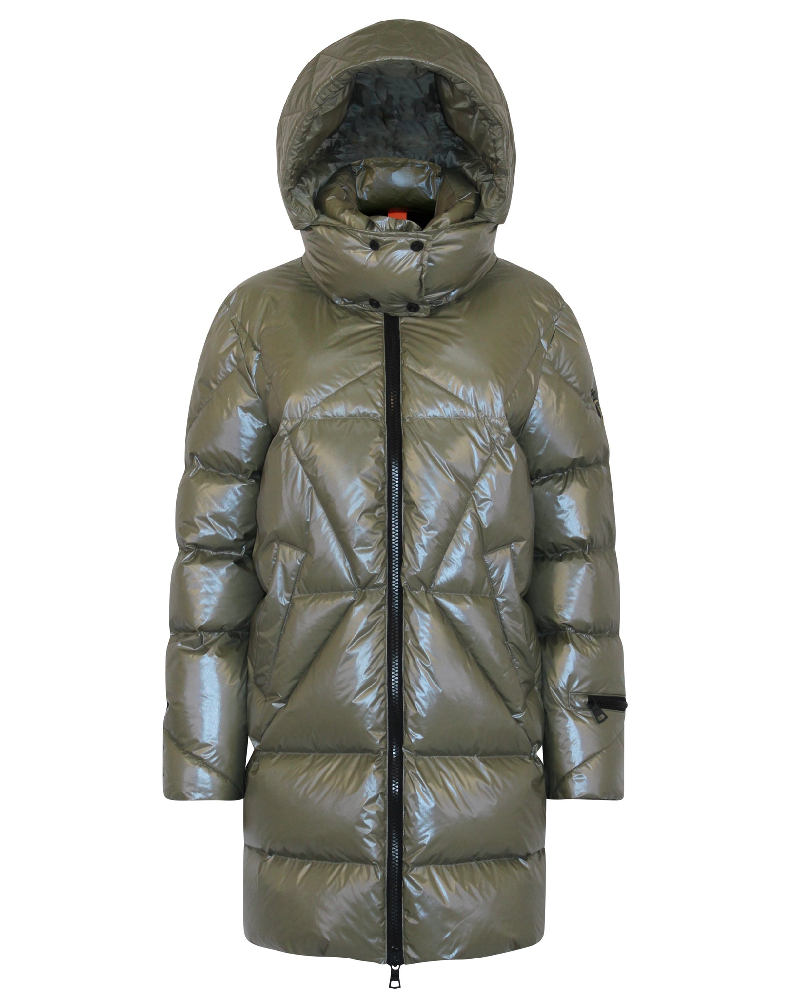 This fashion forward, oversized down coat showcases an eye-catching stitching pattern. It is a bold fashion piece featuring large grid quilting, contrast color lining and a detachable hood. It is a warm and comfortable way to make a fashion statement during the winter months. This is the most comfortable down puffer, check it out!