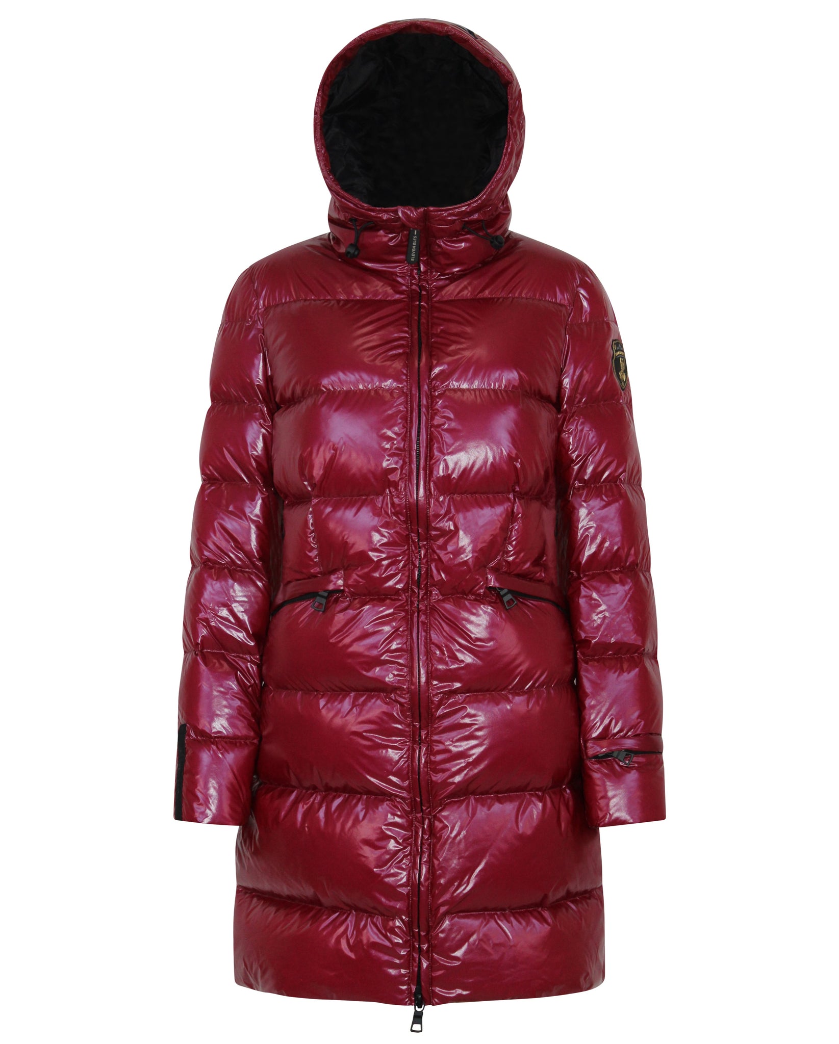 This down coat blends sporty sophistication with elegant design, making this puffer the perfect choice for modern women. Crafted to keep you warm and dry, its waterproof shell and down-filled adjustable hood ensure comfort in any weather. Thoughtfully designed from storm cuff sleeves lock heat, while fleece-lined pockets add a cozy touch. With practical features like a Eleven Elfs signature sleeve cuff zip pocket and an inside chest zip pocket, the Frysa coat offers style, function, and the ultimate in everyday versatility.