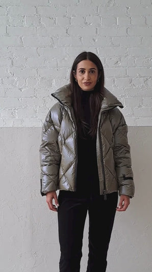 Stay warm in style with our Oversize Down Bomber, designed for an effortlessly cool look with maximum comfort. Featuring an elegant diamond stitch pattern, this jacket combines classic details with a modern oversized fit. The detachable down-filled hood and high collar provide extra protection from the cold, while fleece-lined zip pockets keep your hands toasty. Our signature sleeve zip pocket adds a unique touch, and the adjustable drawcord at the hem ensures a custom fit. Elevate your winter wardrobe with the ultimate in premium warmth and versatility.