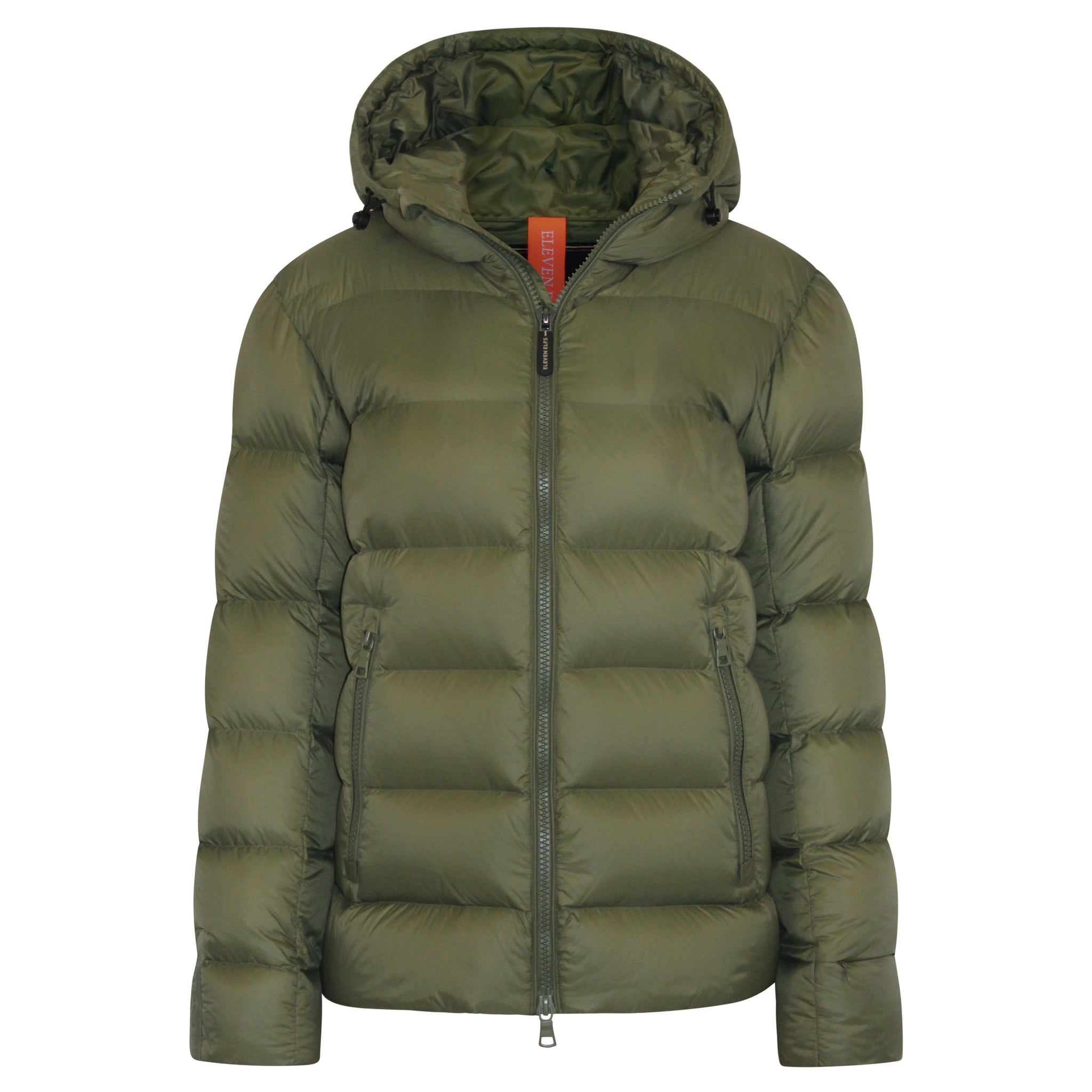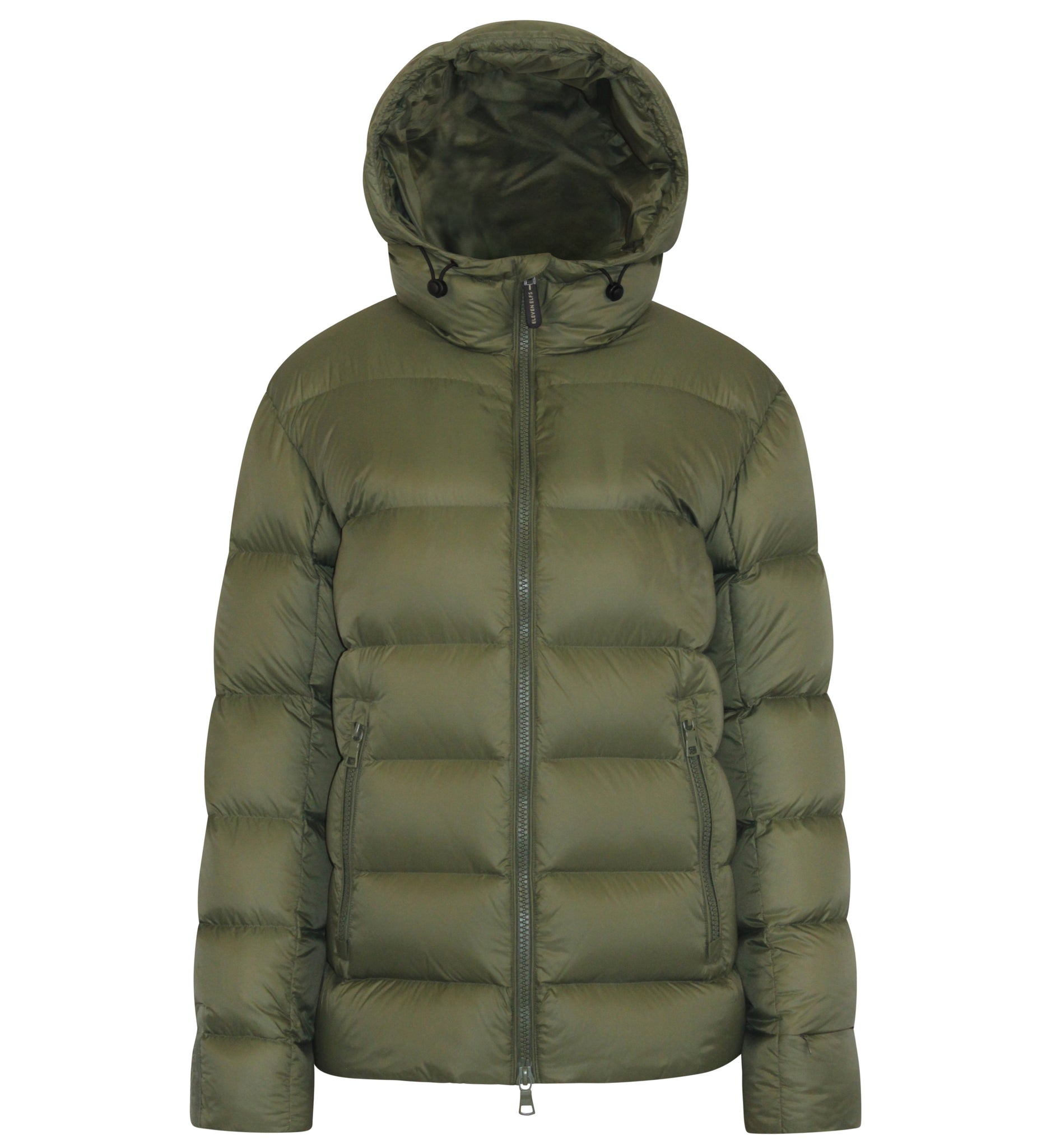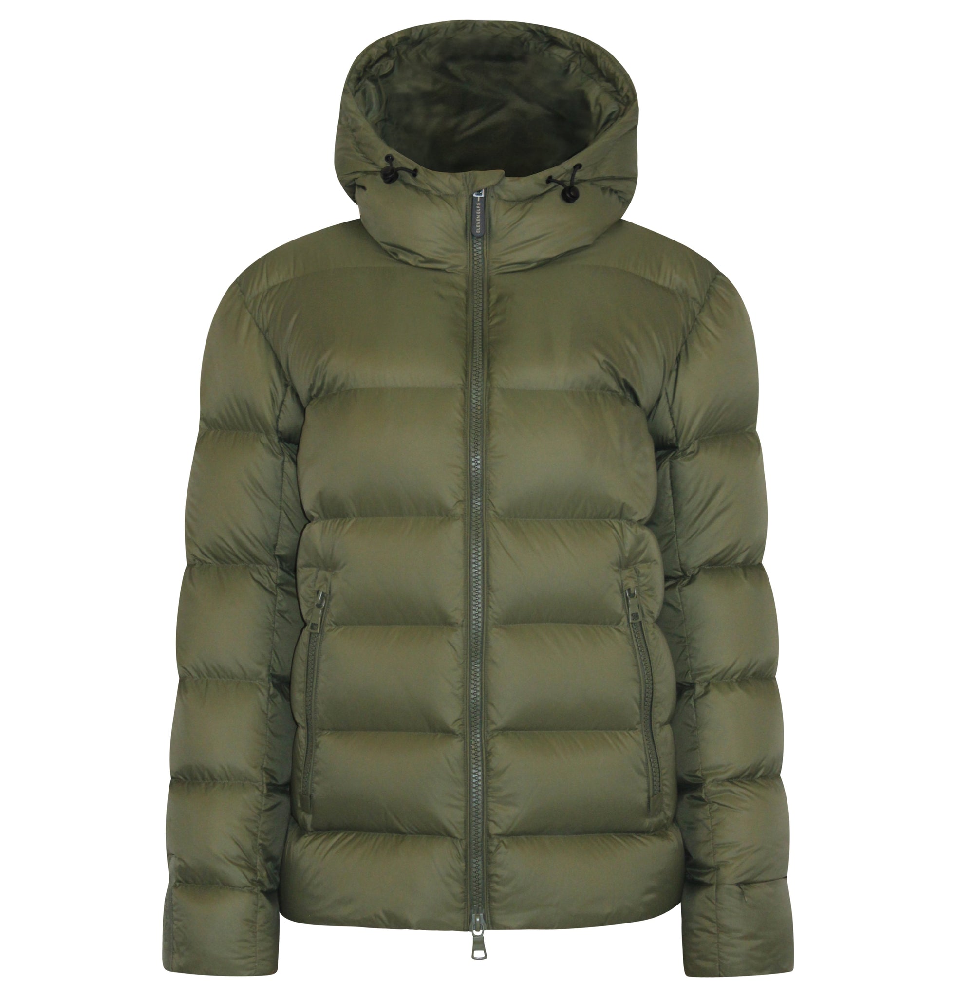 The jacket features a front two-way zipper, inside chest zipper pocket, a signature sleeve cuff zipper pocket and a bottom hem adjustable by hidden drawstring. The Eleven Elfs logo patch is on the left sleeve.