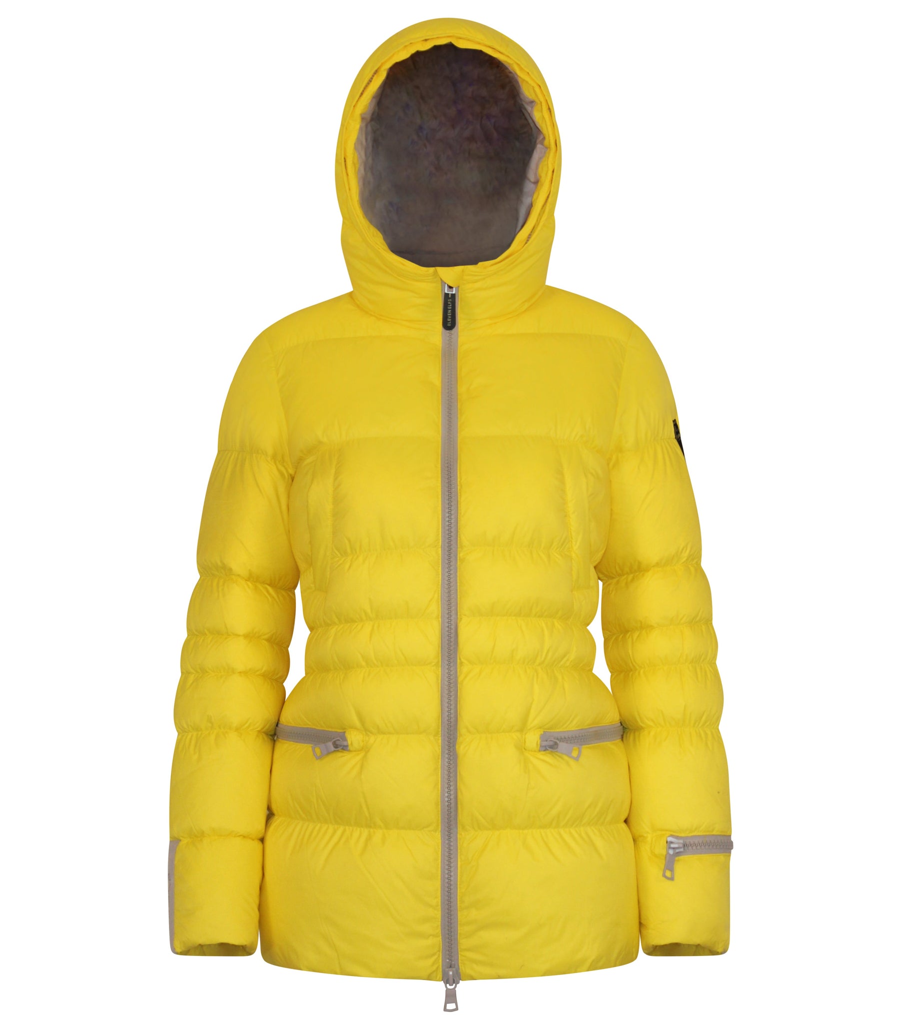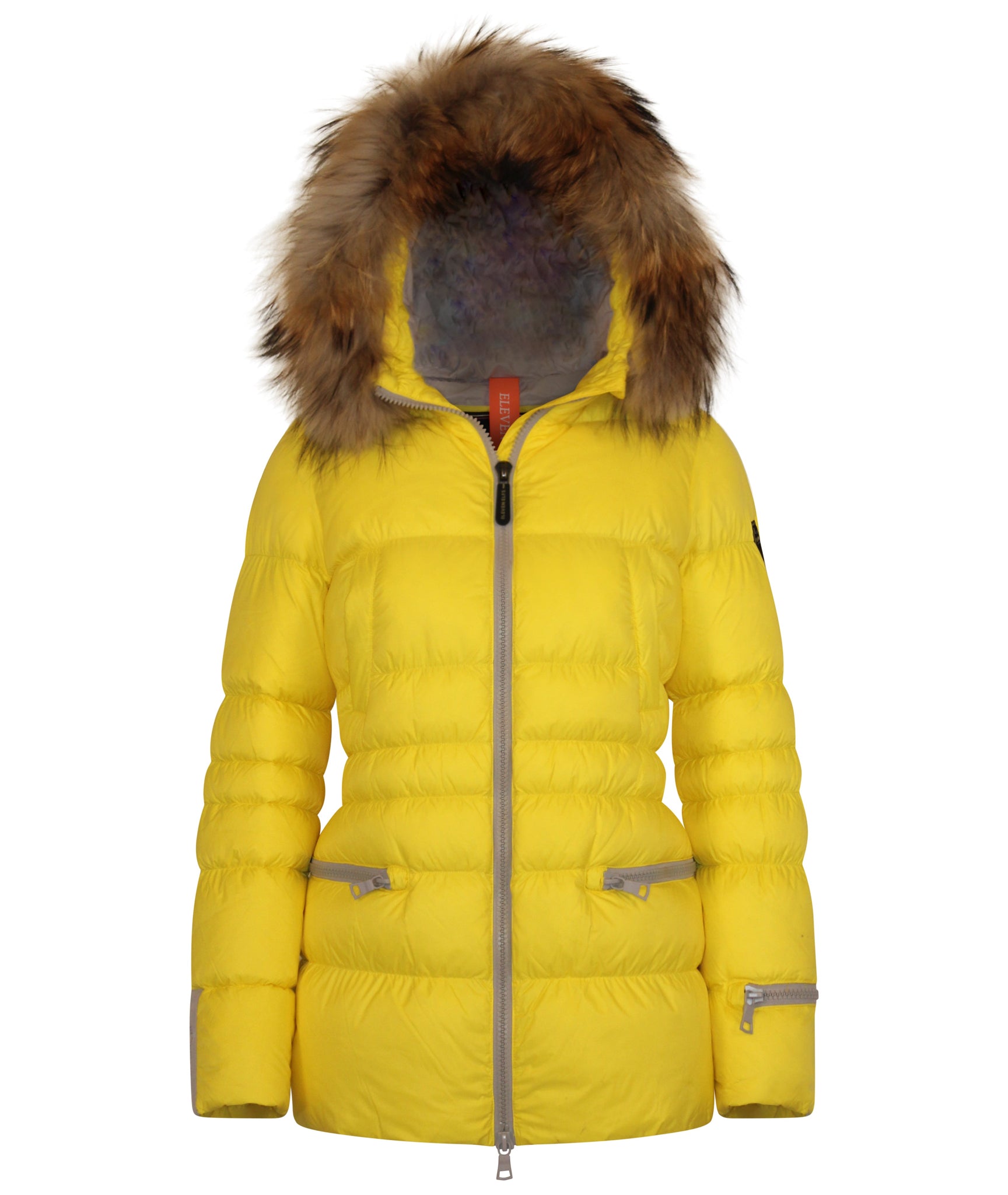 This mid-length down puffer jacket contours the body, while keeping you warm and dry with a water repellent shell, storm cuff sleeves, and a down-filled hood with removable fur trim. Style meets function with 2 fleece-lined zip pockets, a signature sleeve cuff zip pocket, and a mesh chest pocket on the inside.