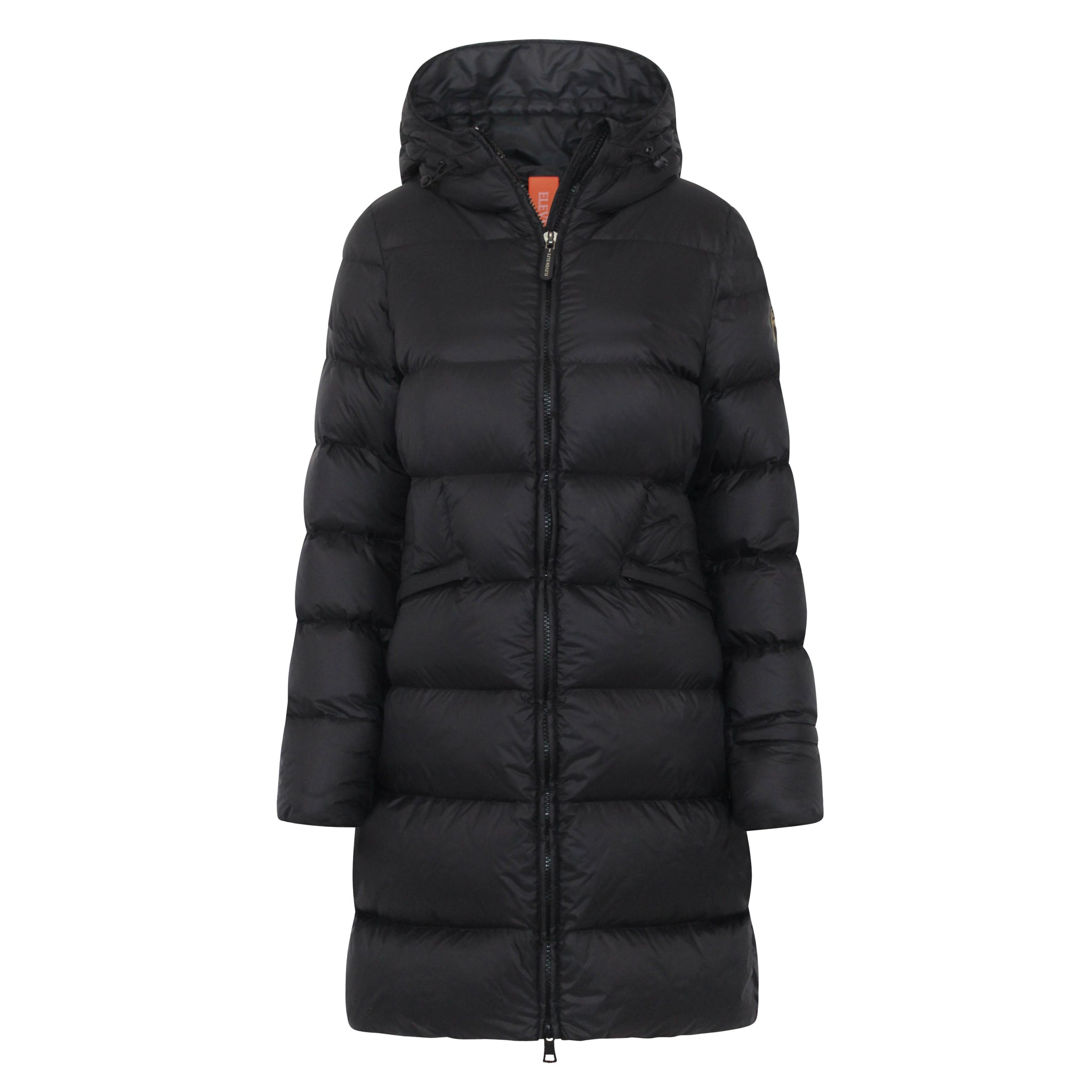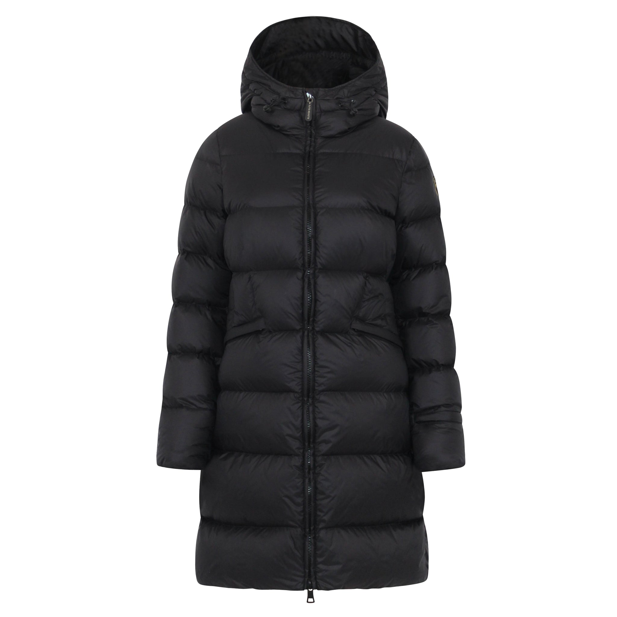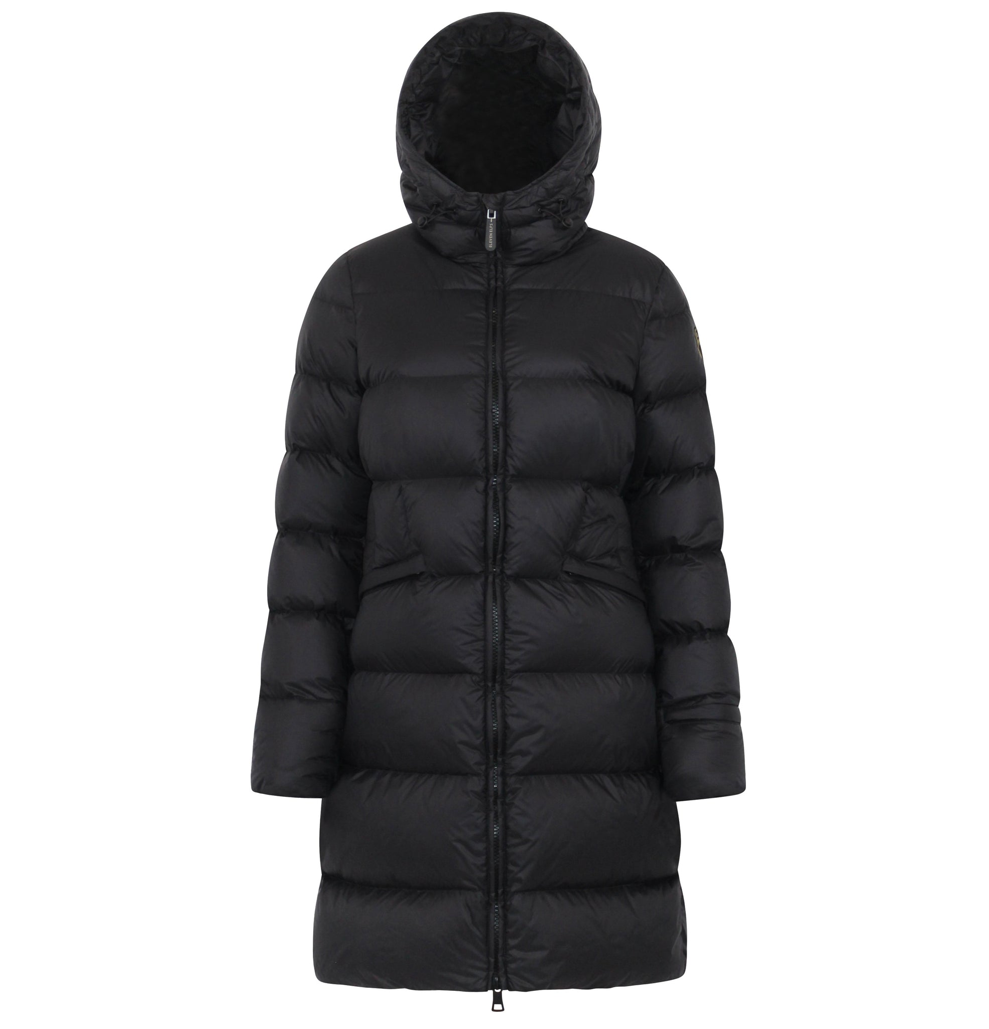 This down coat blends sporty sophistication with elegant design, making this puffer the perfect choice for modern women. Crafted to keep you warm and dry, its waterproof shell and down-filled adjustable hood ensure comfort in any weather. Thoughtfully designed from storm cuff sleeves lock heat, while fleece-lined pockets add a cozy touch. With practical features like a Eleven Elfs signature sleeve cuff zip pocket and an inside chest zip pocket, the Frysa coat offers style, function, and the ultimate in everyday versatility.